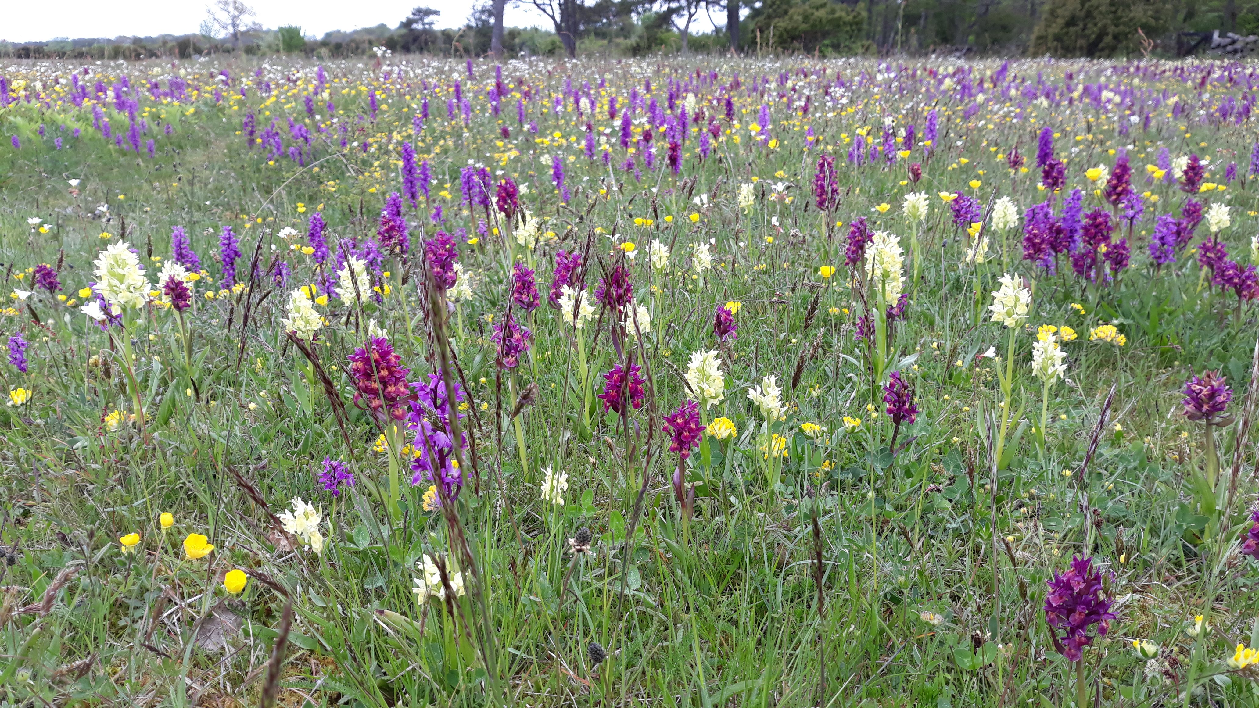 Heute waren wir bei bedecktem Wetter in der Nähe von Böda in Ö Alvara und dort stehen diese und andere Orchideen in einer Fülle. Kaum vorstellbar. Man badet in einem Meer von Orchideen. Hier Fotos dazu, obwohl sie diese Fülle kaum darstellen können. WUNDERBAR!